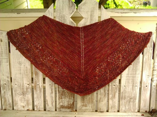 To begin, I knit an even number of rows in garter stitch (knitting every row). Then the real tension starts as I begin knitting the lace pattern. No, I don't mean, "I'm moving in two weeks and I just lost my job and my cat just died," kind of tension (although a little bit of that, too...I live for drama). I mean that I need to adjust my knitting tension every few stitches to ensure that the colors line up, accounting for yarnovers and their corresponding decreases. Some of my stitches are loose and just...hideous, while some of them are so tight that I have trouble muscling them around on the needles.